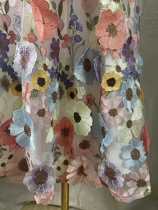 JIAMI Luxury High Waist Floral Pleated Tulle Skirt