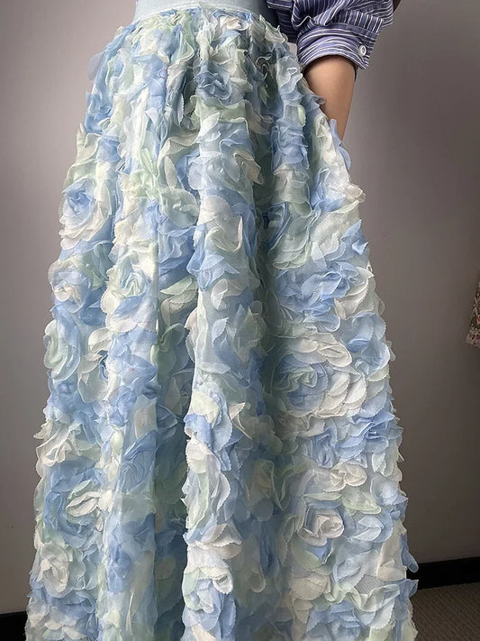 JIAMI 3D Floral Blue Maxi Skirt