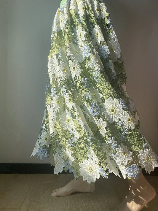 JIAMI Luxury Lace Hollow Embroidery Floral Green Long Skirt