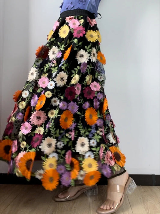 JIAMI 3D Floral Multi-Color Long Vintage Skirt