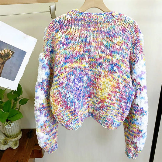 Women Colorful Bohemian Chunky Knit Mohair Sweater Handmade Bulky Cardigan Warm Autumn Winter Woman Clothing
