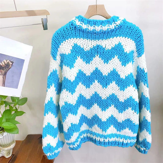 C0905 Women Colorful Bohemian Chunky Knit Cardigan Handmade Bulky Warm Thick Sweater