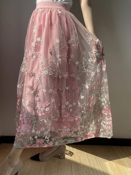 JIAMI Hollow Embroidery Vintage Long Skirt