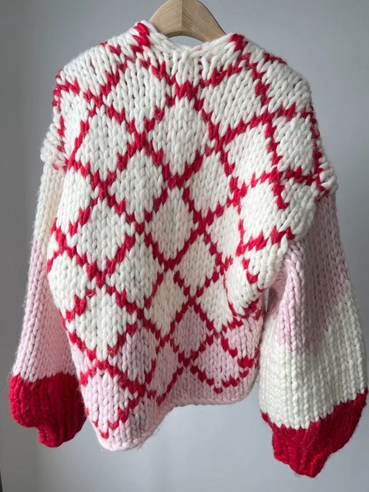 Kalamet Handmade Knit Chunky Cardigan Christmas Sweater Women Winter Clothes