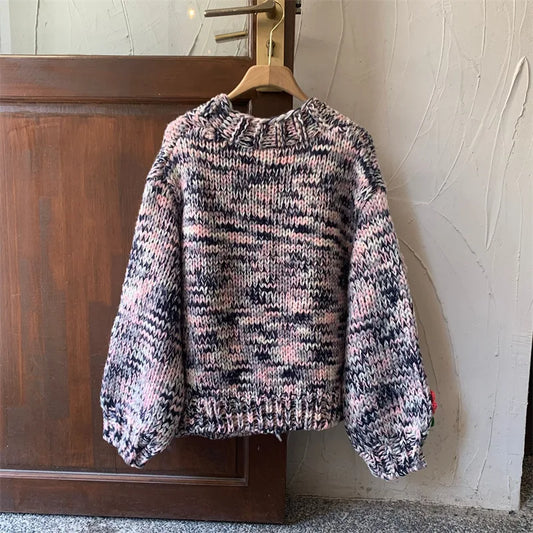Kalamet Handmade Chunky Patchwork Thick Knit Cardigan