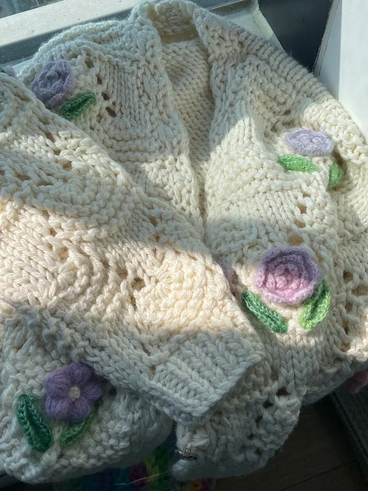 Chunky Handmade Hook Floral Knit Sweater Cardigan