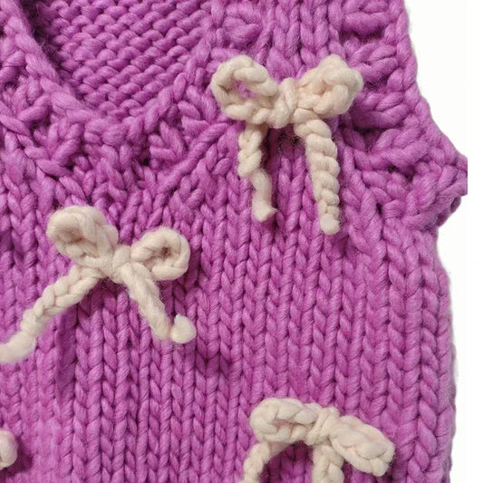 Women Handmade Purple Sweater Vest with Bow Sweater Chunky Knitwear Sweet Warm Top