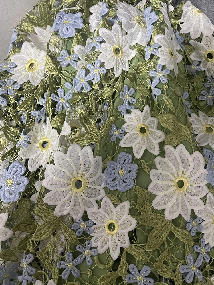 JIAMI Floral-Embroidered Lace Green Pencil Skirts