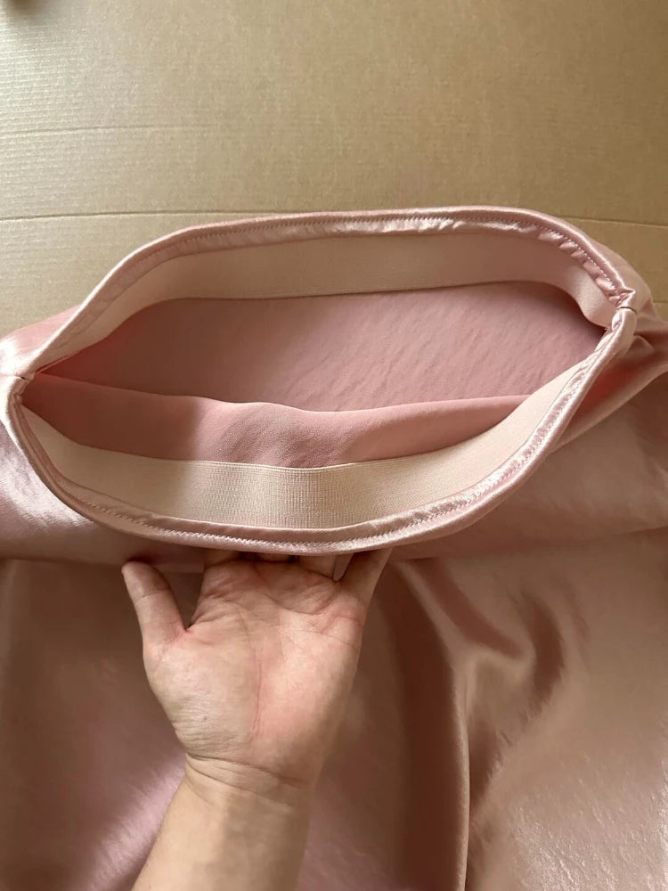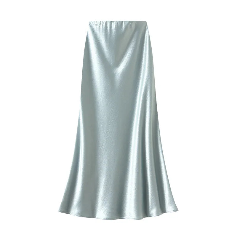 Thick Glossy Satin Midi Skirt Elegant Quiet Luxury Basic High-Waist Skirt or All Seasons
