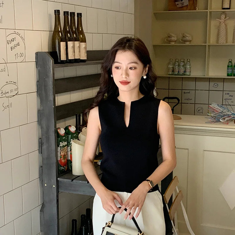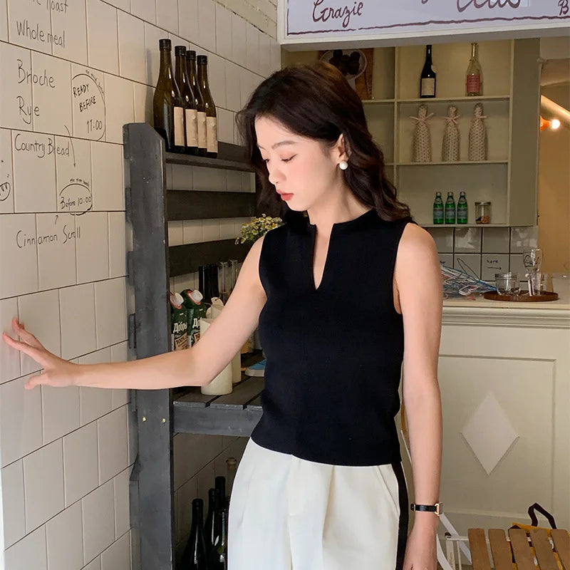 JIAMI Women V-neck high Quality Breathable Sleeveless Knit Tank Top